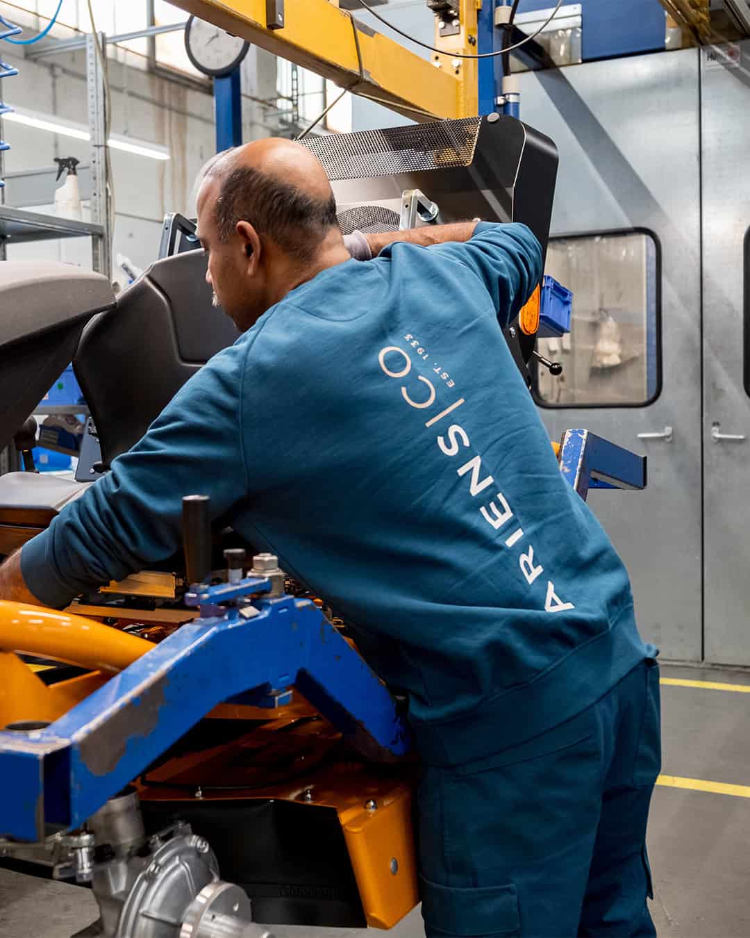 Die Idee war nicht, einfach nur Logos auf die Kleidungsstücke zu drucken. Es ging darum, etwas Funktionales und Wiedererkennbares anzubieten, das unsere Arbeitsweise unterstützt, die Marke in der Werkstatt stärkt und die Verbindung zwischen Menschen und Unternehmen sichtbar macht – von der Produktion bis zur Produktvorführung. Diese Kollektion ist ein wichtiger Schritt, um uns als ein Team unter einem Dach zu vereinen und zu zeigen, wer wir sind, noch bevor wir ein Wort sagen. Sie vereint die Blau- und Grautöne der aktualisierten Corporate Identity von AriensCo und kombiniert Komfort mit Langlebigkeit und einem einheitlichen Markenimage, das sowohl auf dem Feld als auch in der Werkstatt gut zur Geltung kommt.